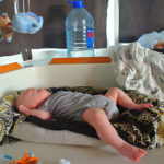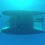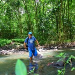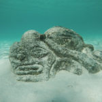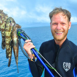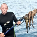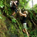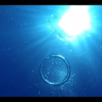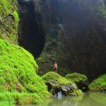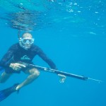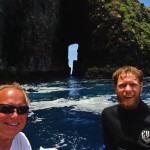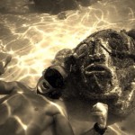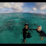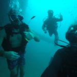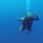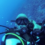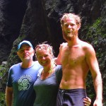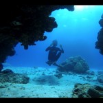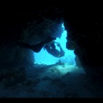 Geno squeezing himself trough a small underwater cave