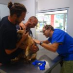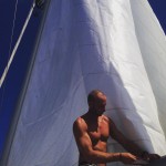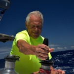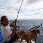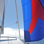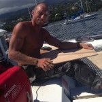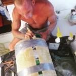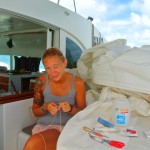 Anna repairing our damaged sail