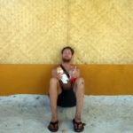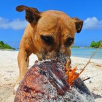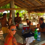 Geno is opening up a coconut on Rangiroa