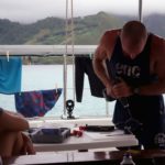 Fibreglass project outside Mai Kai Marina. New storage for gas bottles. #fibreglass #livingonaboat #lifeatsea #sailingaroundtheworld #sailingbaydreamer #gasbottles #sailing #catamaran #baydreamer #maikaimarina #borabora #frenchpolynesia