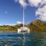 Yes the small white dot to the right is Bay Dreamer! ⛵️#sailingbaydreamer #catamaran #lagoon #sailingcatamaran #sailingaroundtheworld #lifeatsea #catamaranlagoon #borabora #frenchpolynesia