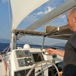 After 2 days of night sailing we are now only 100 nm from Athens where we need to be on the latest the 15:th of July. We had a great mix of winds on the way down here and yesterday offered pretty tough winds up to 32 knots straight in our face for almost 8 hours. Me and Patrik had a good time tacking the boat towards our destination with speeds up to 9 knots mean while the rest of the group mainly sat inside “enjoying” the cruise.
